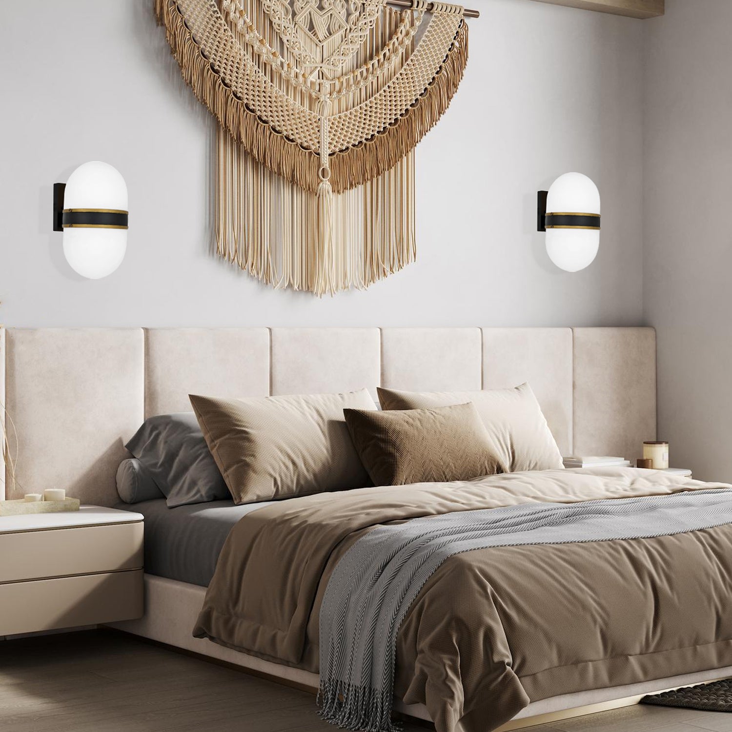 Rama Collection - Matte Black and Textured Gold Wall Sconce - W:15cm