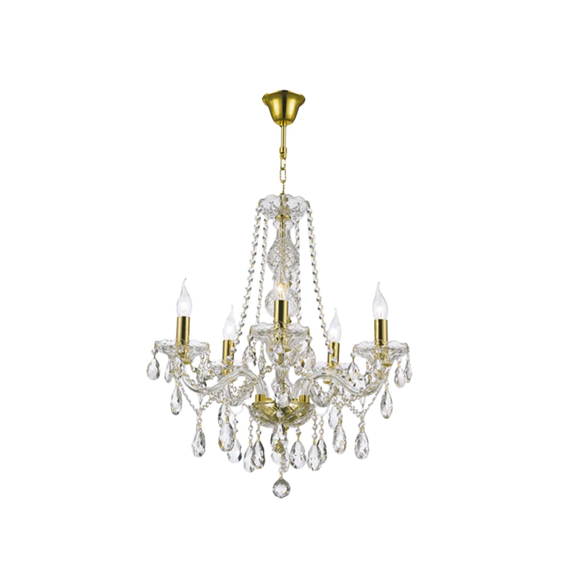 Bohemian Elegance 5 Arm Crystal Chandelier - GOLD