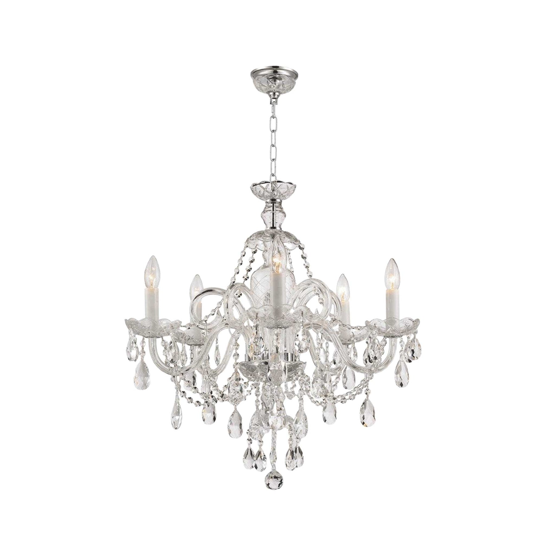 Bohemian Prague 5 Arm Crystal Chandelier - Chrome Fixtures