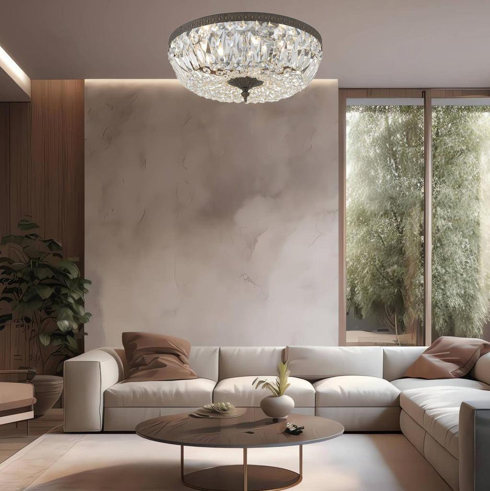 Our collection of modern flush mount ceiling lights includes slimline and geometric options that reinterpret the traditional chandelier for minimalist and transitional interiors. With finishes in crystal, chrome, and matte black, these lights provide strong illumination with sleek visual appeal—ideal for modern homes, apartments, or clean-lined renovations.