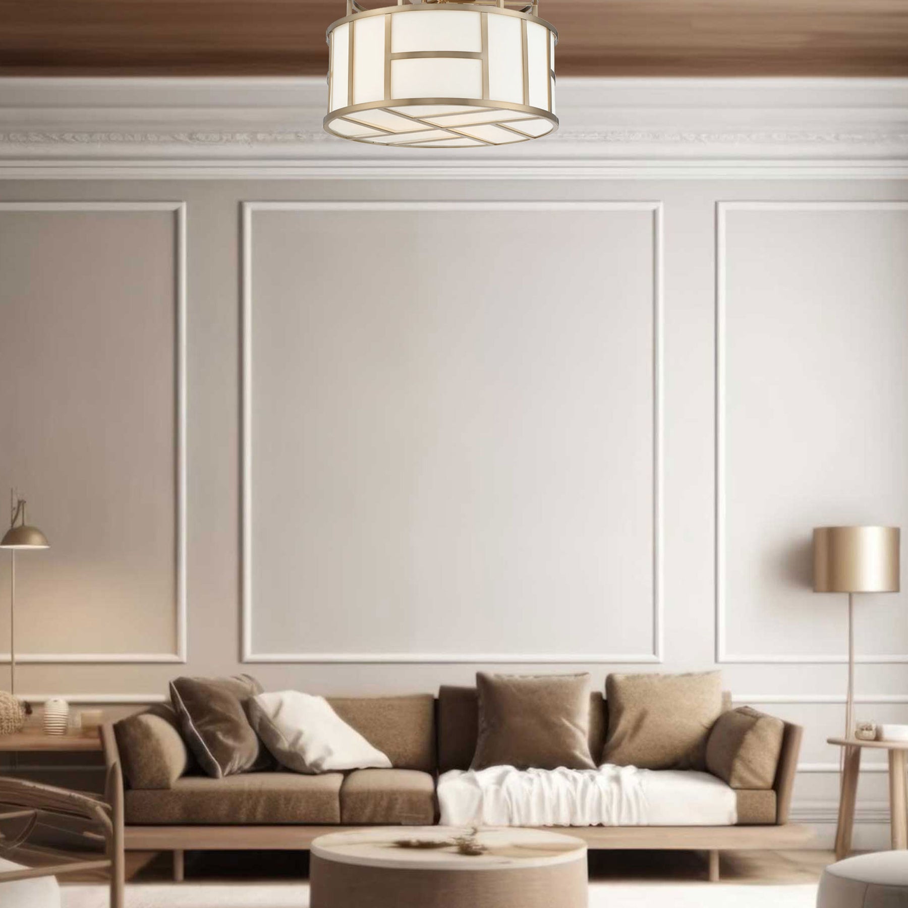 Fulton Collection - Flush Mount Chandelier - Satin Brass Frame