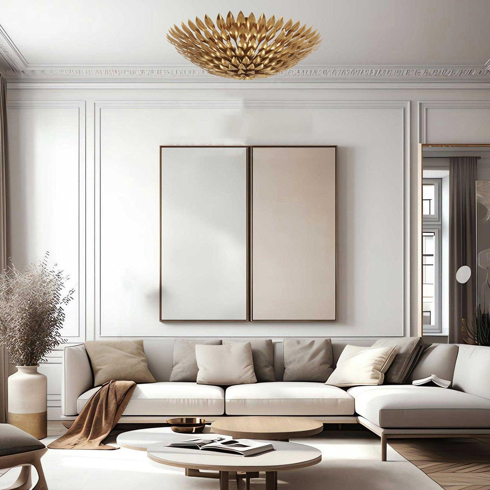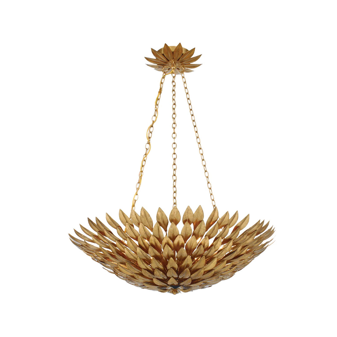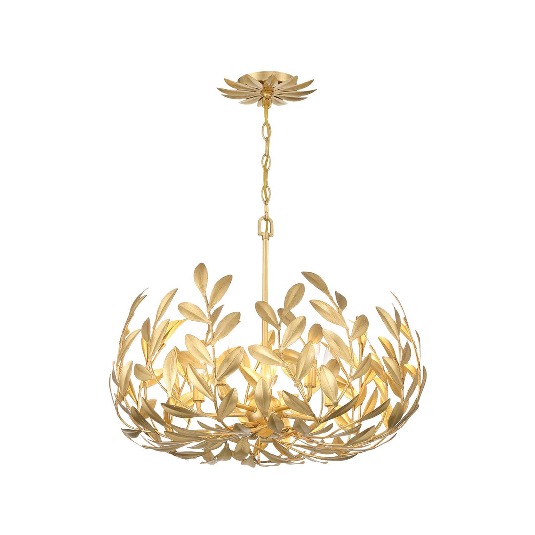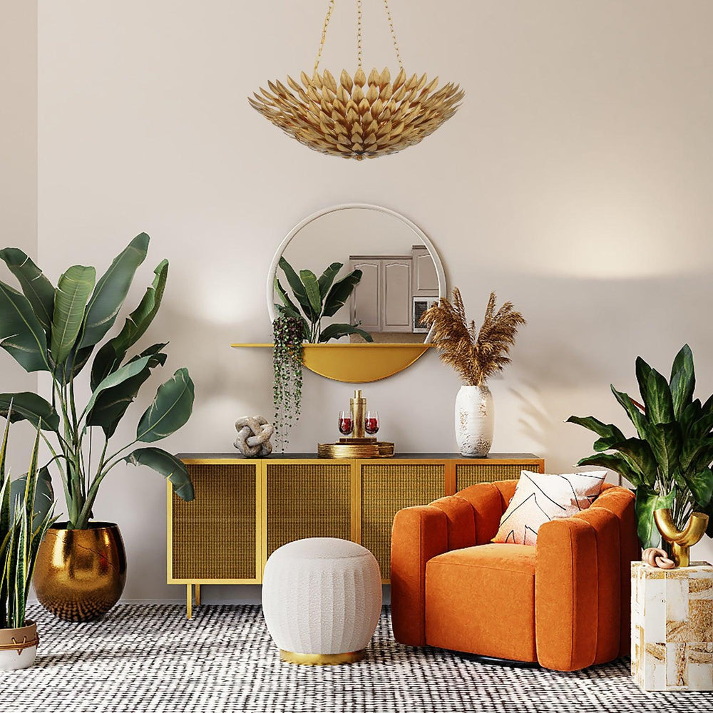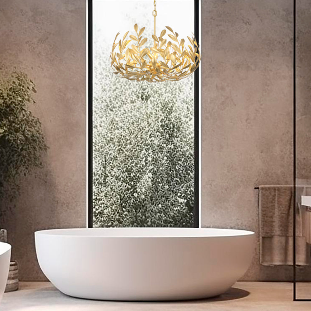 Layers of individually crafted wrought iron leaves create a striking and functional statement, blending sculptural detail with beautiful light. The interplay of intricate foliage and flowing vine forms delivers rich texture and depth, casting a warm, inviting glow across the ironwork.