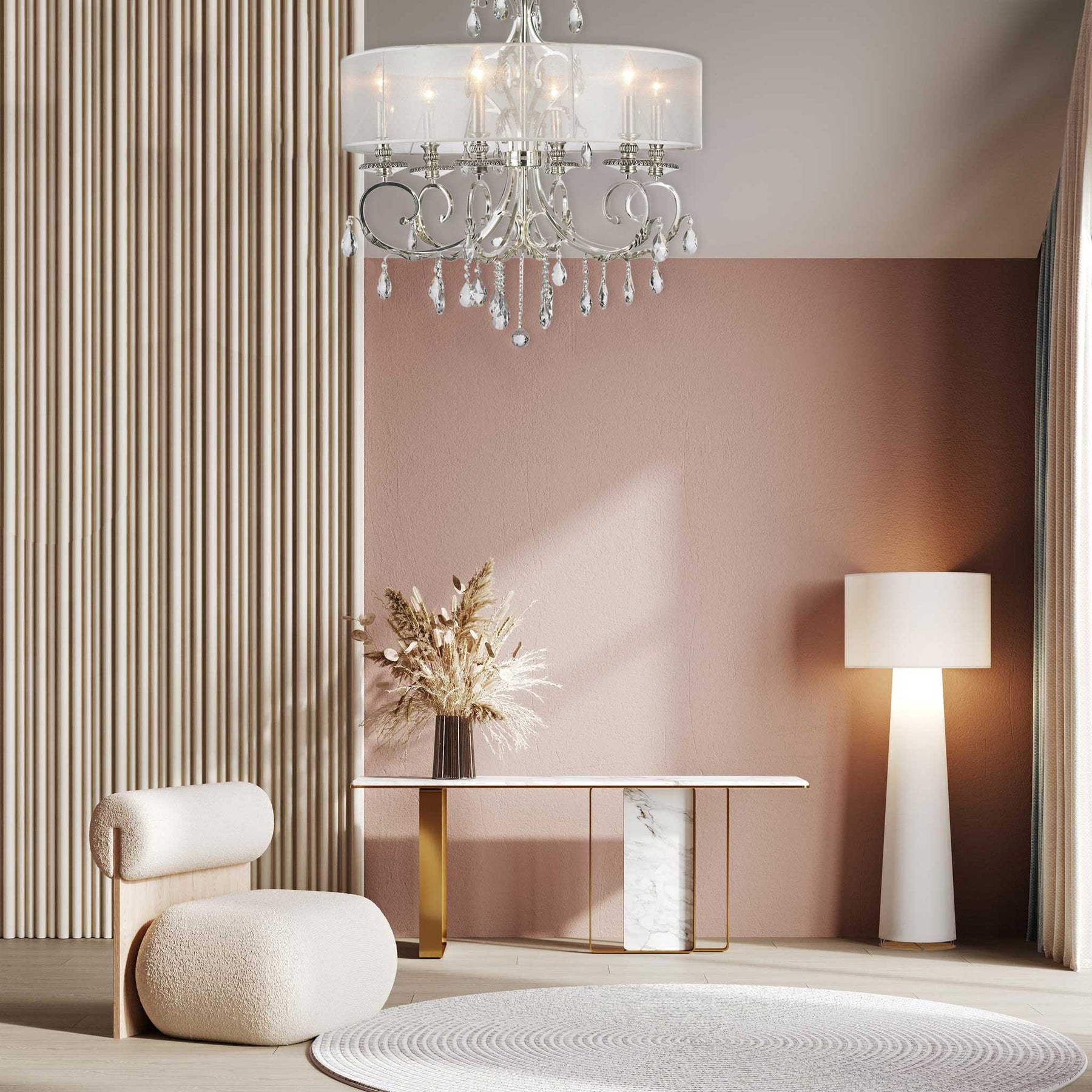 ARIA - Hampton 6 Arm Chandelier - Silver Plated - Orb Outer Shade - Designer Chandelier