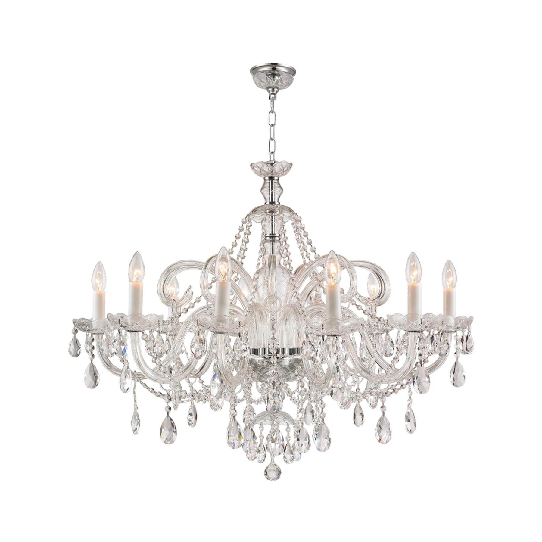 Bohemian Prague 10 Arm Crystal Chandelier - Chrome Fixtures